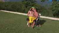 In the heart of a lush outdoor paradise, beneath a warm sun that brings an intimate golden hue to everything it touches, a passionate couple indulges in an eroticallycharged and lusty affair on their sun lounger.With an atmosphere ripe with unbridled desire, they are lost in each others embrace, succumbing to the throes of pleasure that only this outdoor bliss could bring.She starts by tenderly giving him a blowjob, her mouth working its magic upon his pulsating member as he moans gently with the passion swelling within him.Her skilled hands work in harmony, stroking and teasing him, eliciting an arousal that quickens his breath.With his anticipation at a fever pitch, she positions herself on top of him, her luscious, erect nipples rubbing against the sunkissed flesh of his chest as they lock eyes, sharing unspoken desires and raw animalistic urges.With each rhythmic thrust, they push deeper into an ocean of passion that seems to consume them entirely, a testament to their unbridled hunger for each others bodies.As they transition into the 69 position, he is now feasting upon her juicy mounds, his tongue swirling and teasing her clit as she continues to ride him in reverse cowgirl, their bodies now moving like a welloiled machine.With each plunge, her labia dance enticingly with his cock, her ass cheeks gripping his manhood like a vice, holding him deep inside her while he laps at her sex.As the couple reaches a crescendo, she can feel herself nearing climax, her vulva swollen and eager for fulfillment.His fingers find their way to her clit as her hips convulse with the tension of impending release, her ass clenching involuntarily around his nuts.As the wave of ecstasy builds, they surrender to the outdoor bliss on sun lounger, relishing in each others carnal pleasures and the sensual delights unleashed before them.When its all said and done, the couple lays spent, basking under the warm sun, their bodies drenched in sweat, sated by the intense release of raw eroticism that they shared with each other.The outdoor bliss on sun lounger sensual delights unleashed a memory etched deeply into both their souls, forever echoing as a testament to their insatiable passion and love for one another.